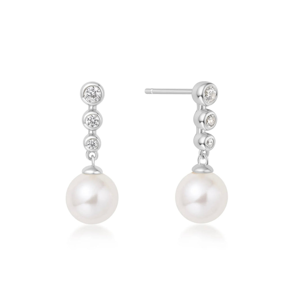 Miss Dainty is designed for the woman who loves elegance with a touch of whimsy. Crafted with delicate details, these brilliant studs feature a cascade of graduated cubic zirconia stones leading to a lustrous pearl. They showcase your exquisite taste and are perfect for mixing and matching with other earrings. Ideal for both formal occasions and everyday wear.