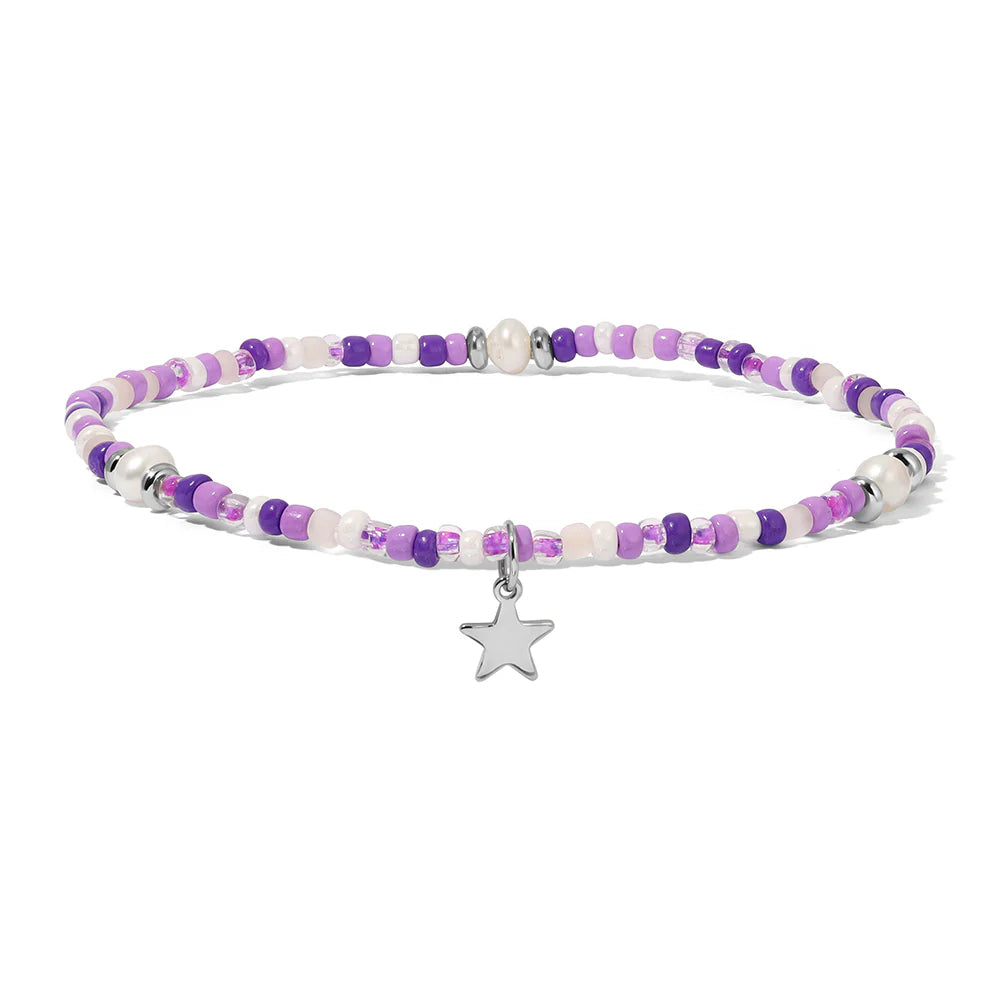Add a touch of whimsy to your look with our Orchid Seed Bead & Silver Star Charm Ankle Bracelet. The delicate orchid seed beads and shining silver star charm make this stretch ankle bracelet a fun and stylish addition to any outfit. Elevate your style with a pop of vibrant purple!