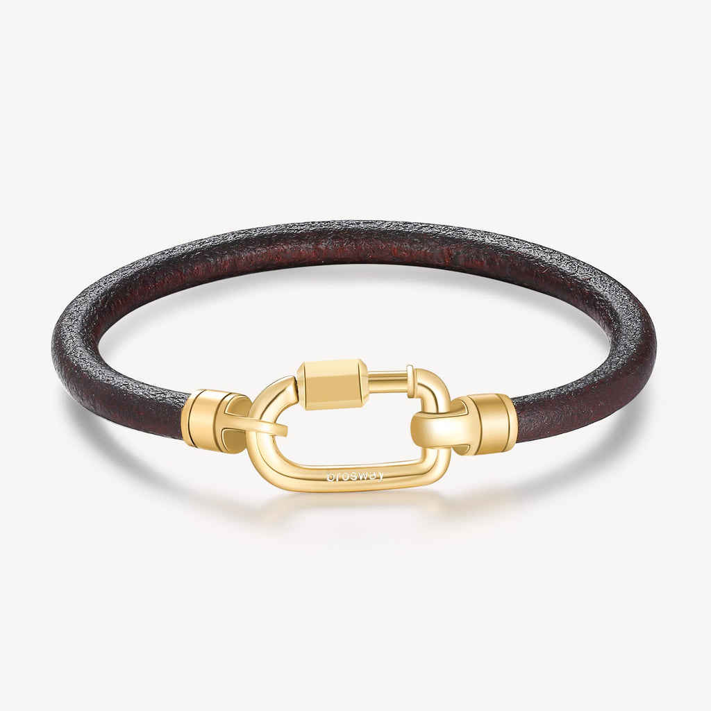 316L stainless steel bracelet, gold finishes with brown real leather.