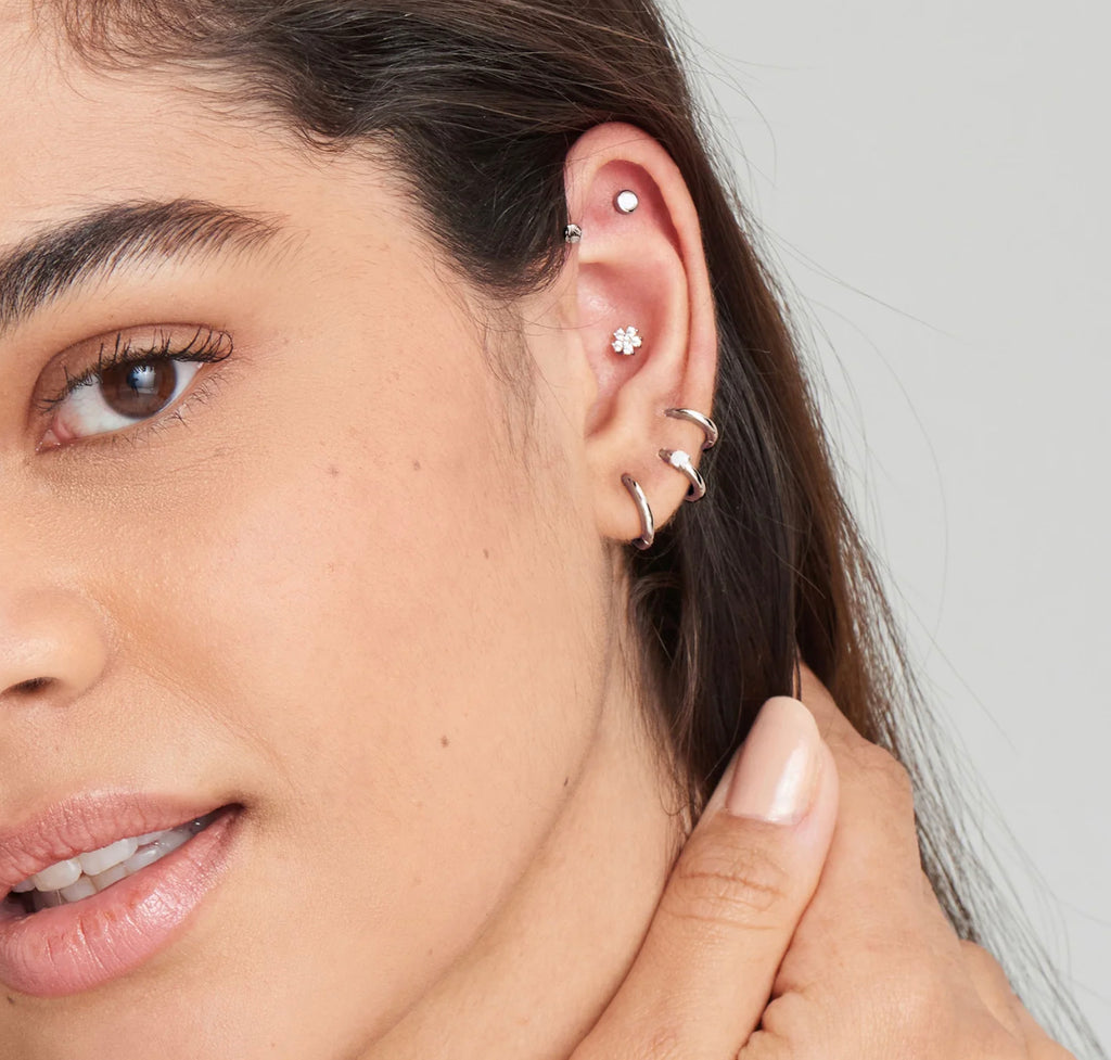 Everyday huggie hoops for all occasions, choose these effortlessly cool huggie hoop earrings. A sleek and super smooth design, huggie hoops are an ideal foundation for any earring collection, perfect for building up a stacked look for all occasions. Wear yours solo or layer up with multiples studs and huggies for a stacked ear party look.