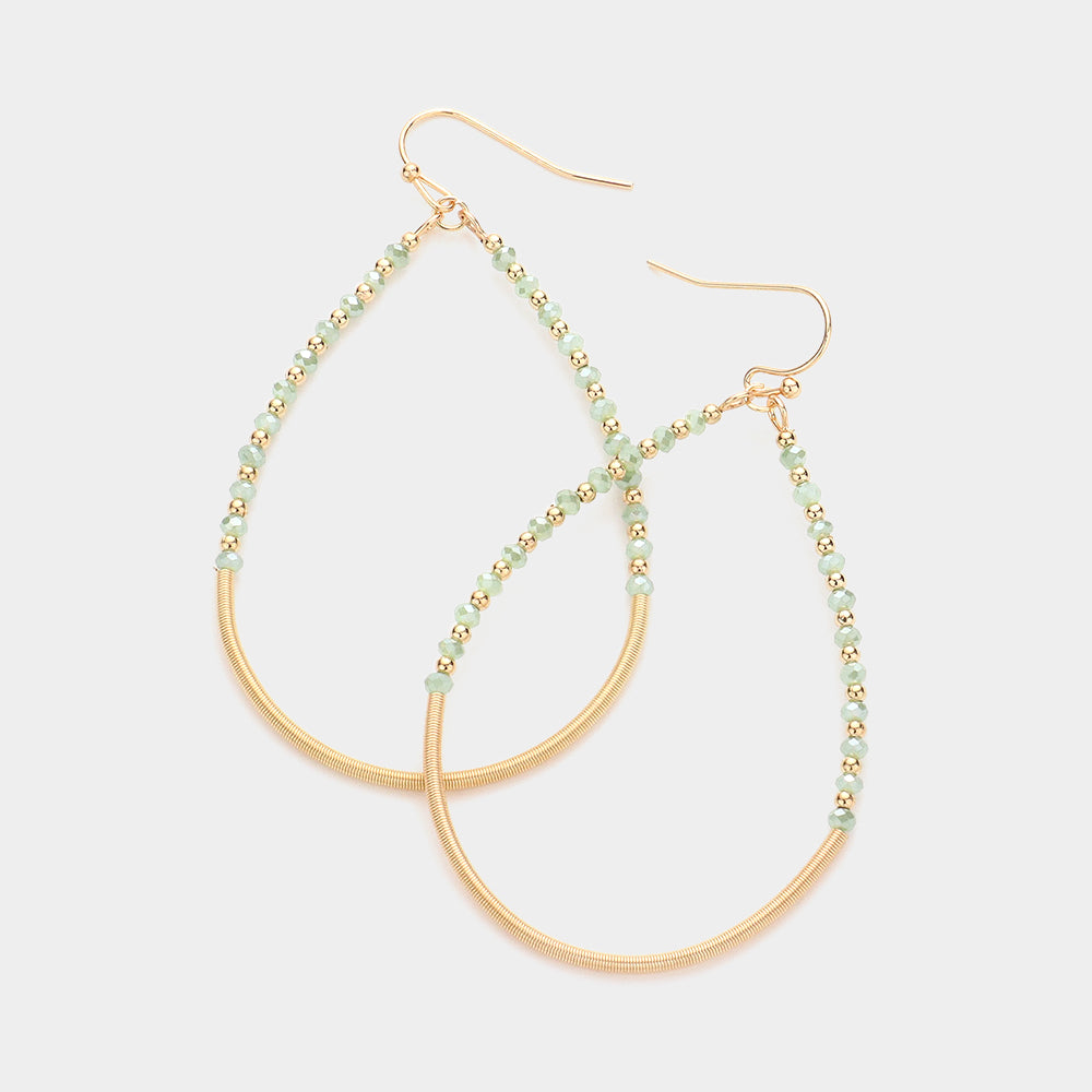 Fashion Gold Tone and Green Crystal Teardrop Earrings