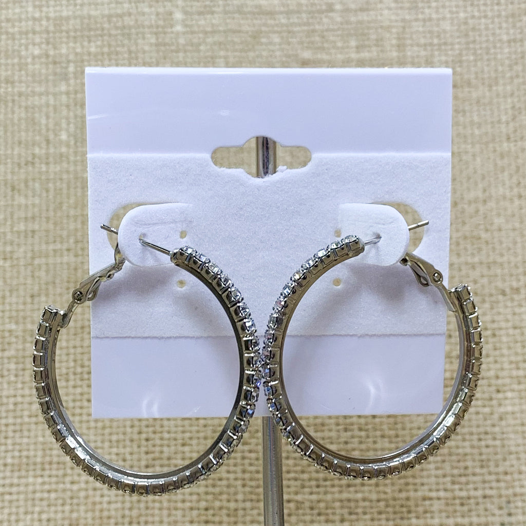 Silver Medium Rhinestone Fashion Hoops