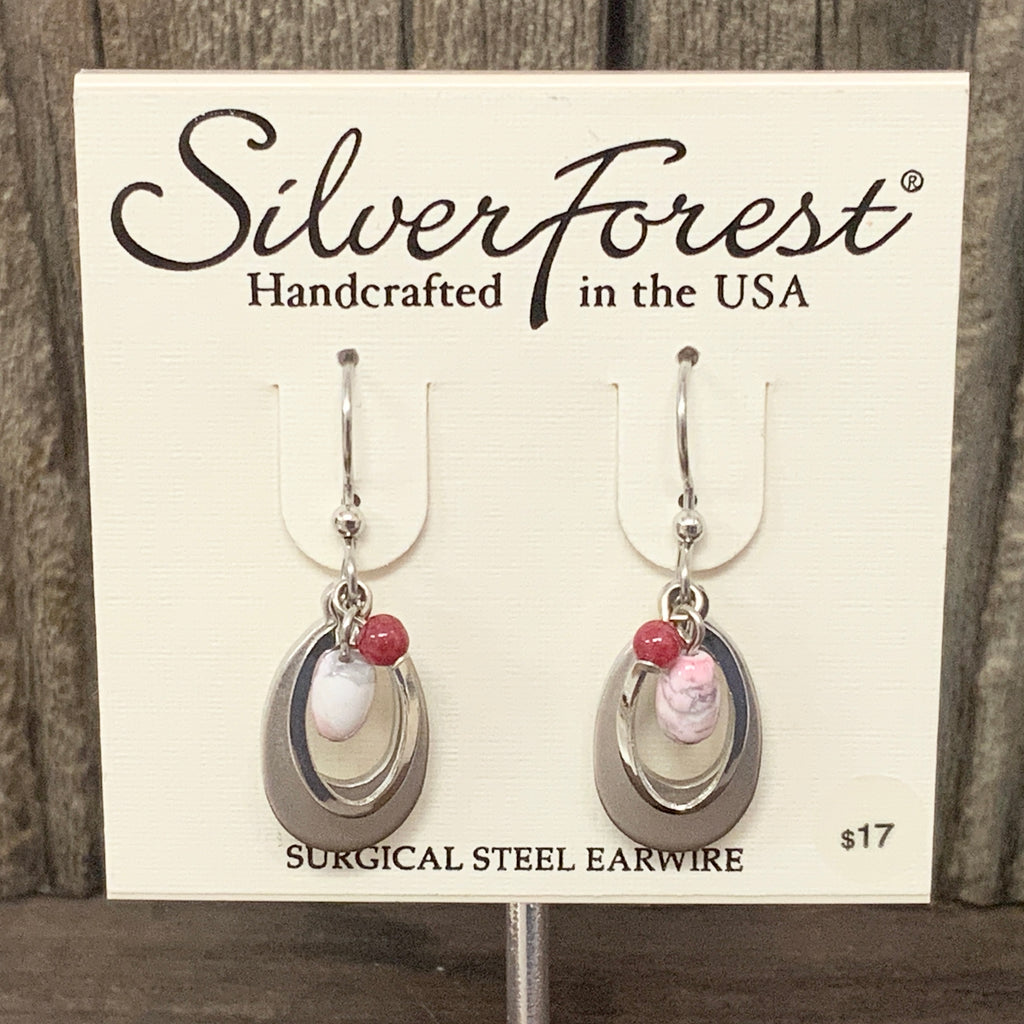 Open Ovals w/ Pink and Red Bead Dangle Earrings