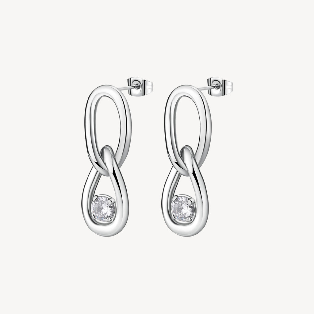 316L stainless steel chain-shaped pendant earrings with clear cubic zirconia.