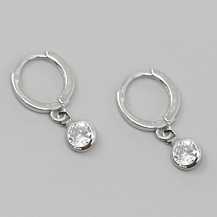 Round Stone Dangle Huggie Earring