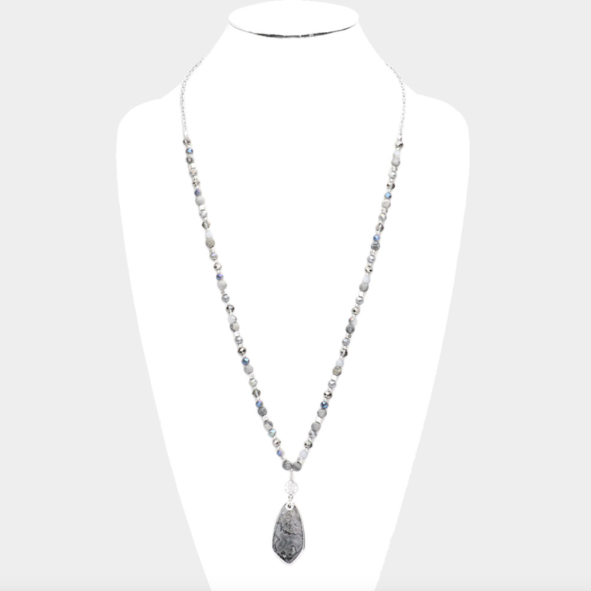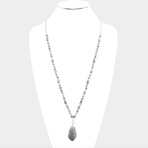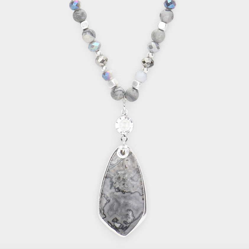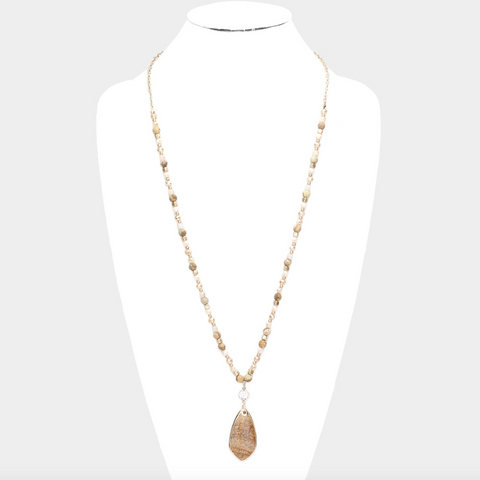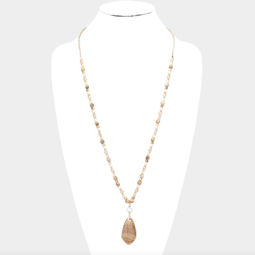 Semi Precious Teardrop Pendant Beaded Long Necklace