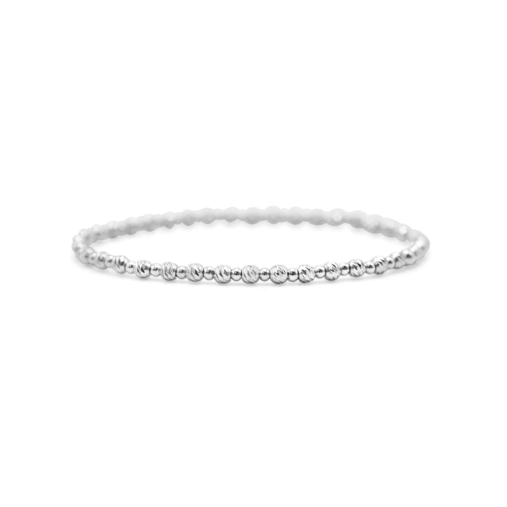 Roll-on and layer with all your other stia faves! The silver stretch collection is a fun and gift-worthy option that adds beaded dimension to your wire arm party.