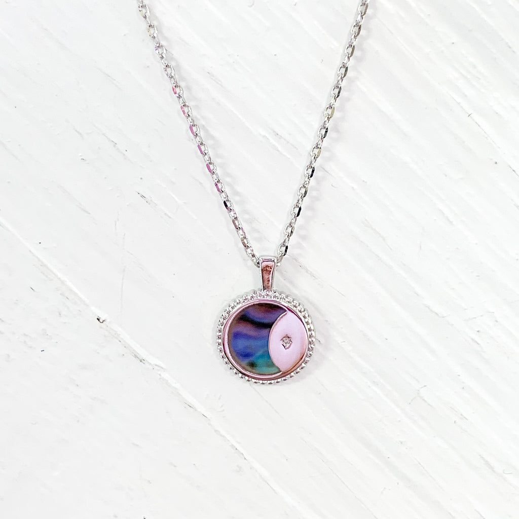 Silver Tone Abalone Moon Disc Fashion Necklace