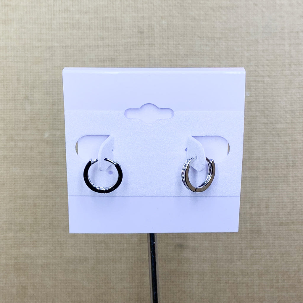 Silver Tone Crystal Huggie Hoops