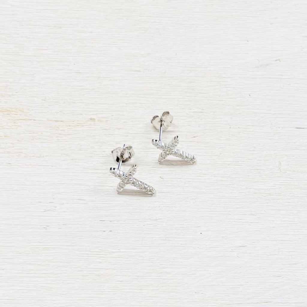 SS CZ Cross Earrings