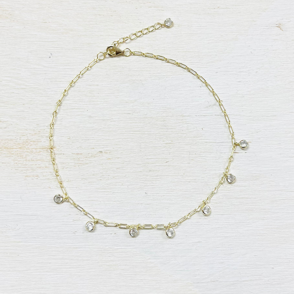 SS Gold Plated Paperclip CZ Dangle Anklet