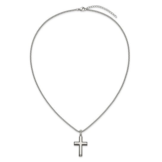 Stainless Steel Black Edge Cross Necklace