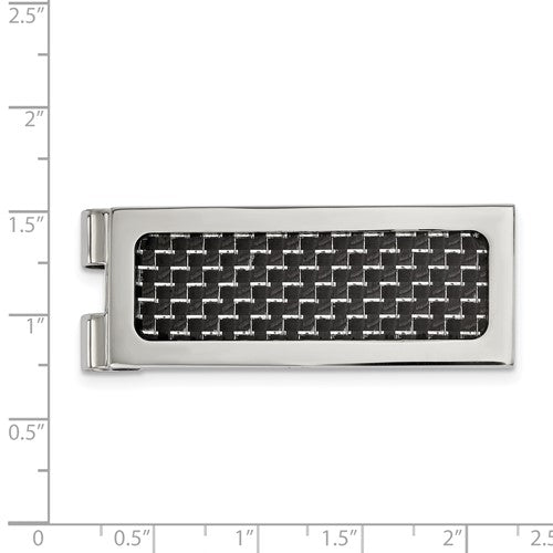 Stainless Steel with Black Carbon Fiber Inlay Money Clip