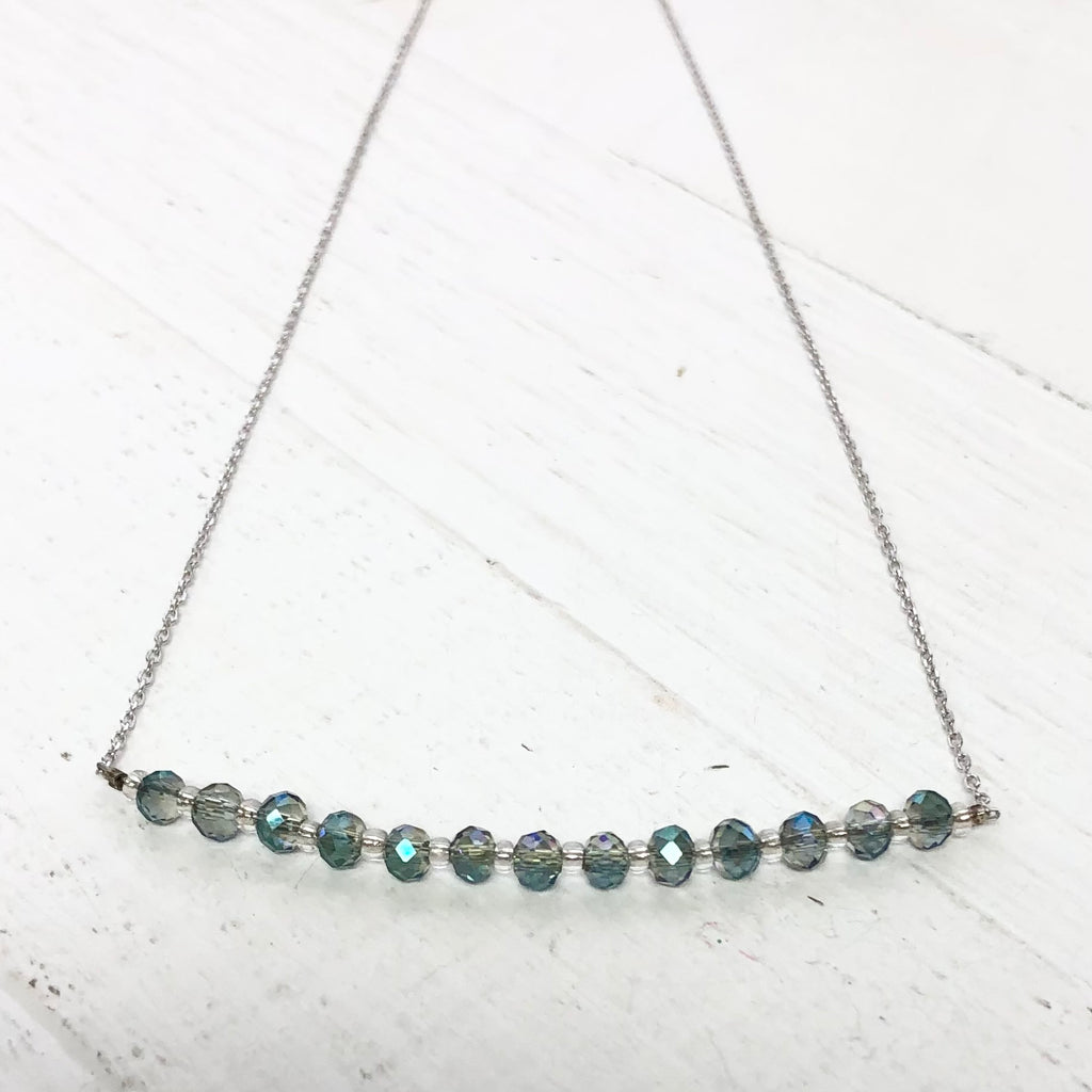 Sterling Silver Iridescent Beaded adjustable length Necklace