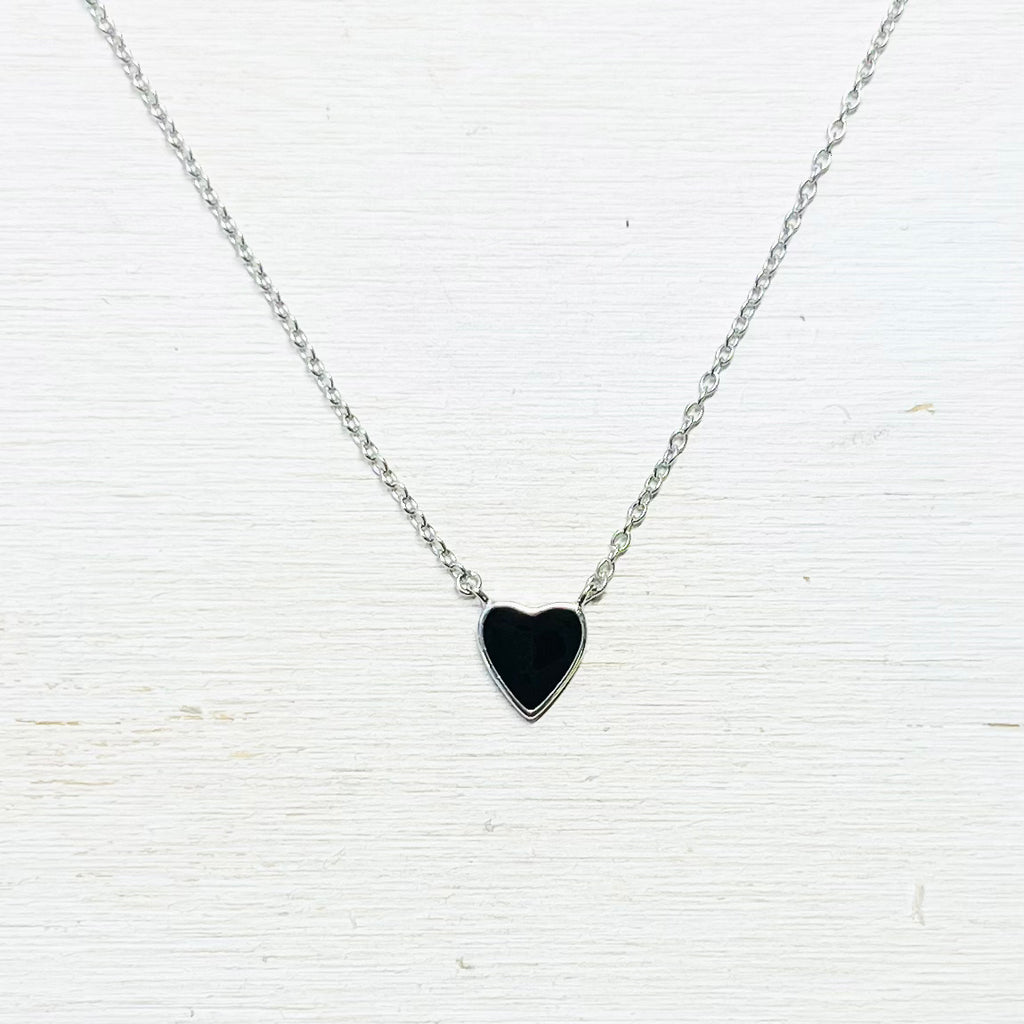 Sterling Silver Black Enamel Heart Necklace