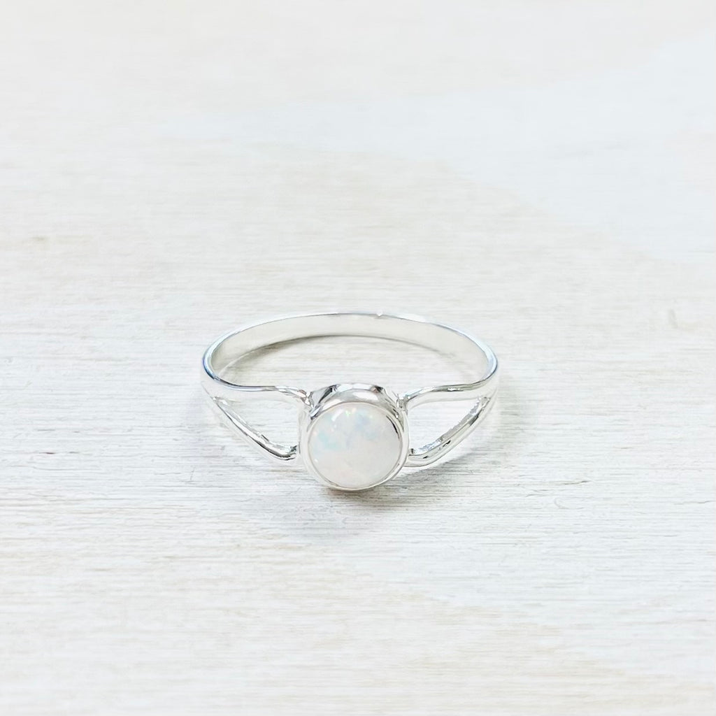 Sterling Silver Created White Opal Ring