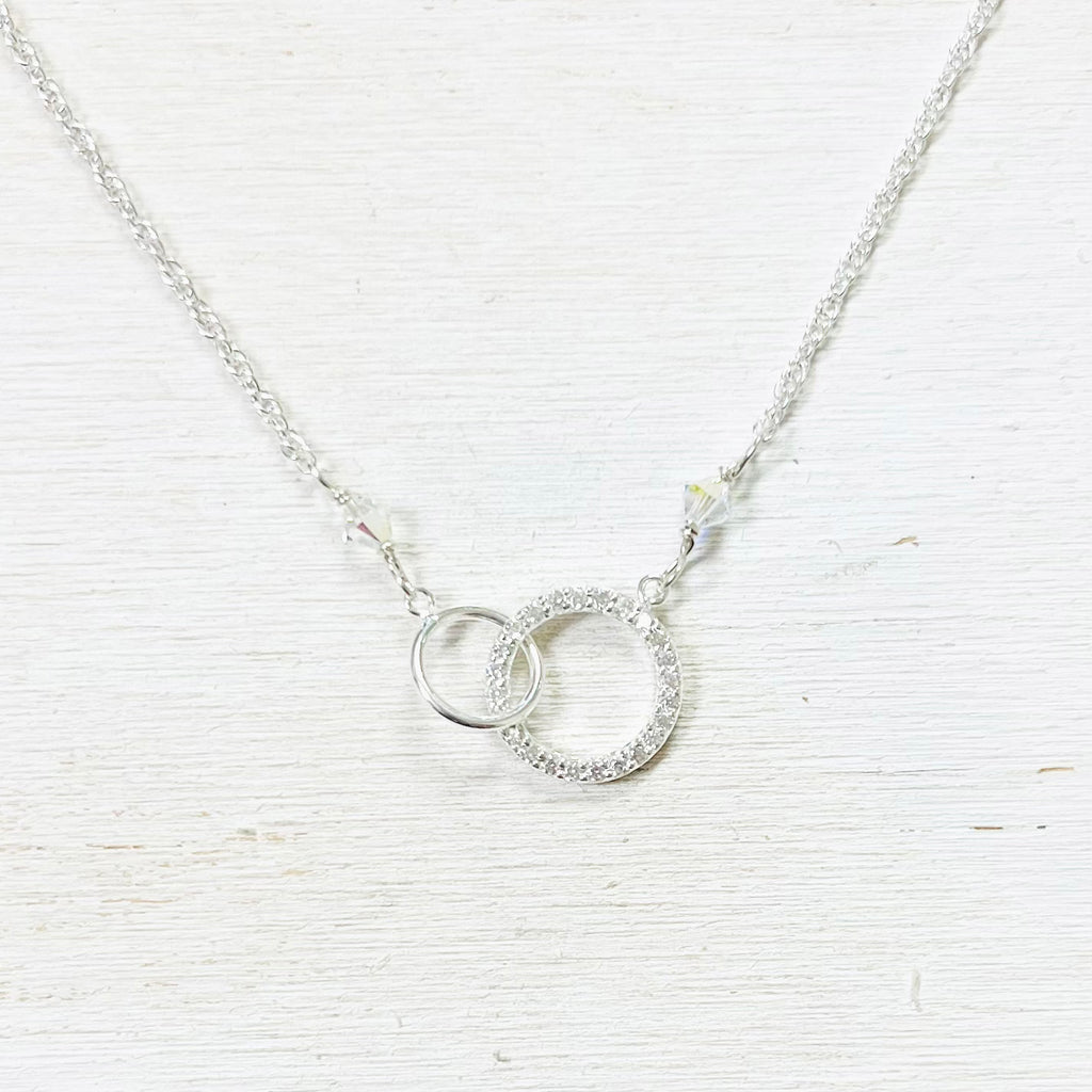 Sterling Silver CZ and Clear Crystal Double Circle Necklace