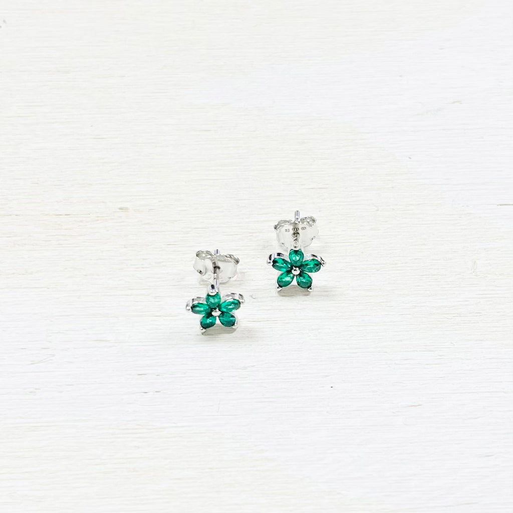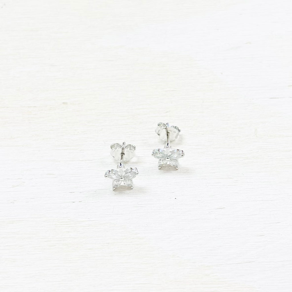 Sterling Silver CZ Flower Earrings