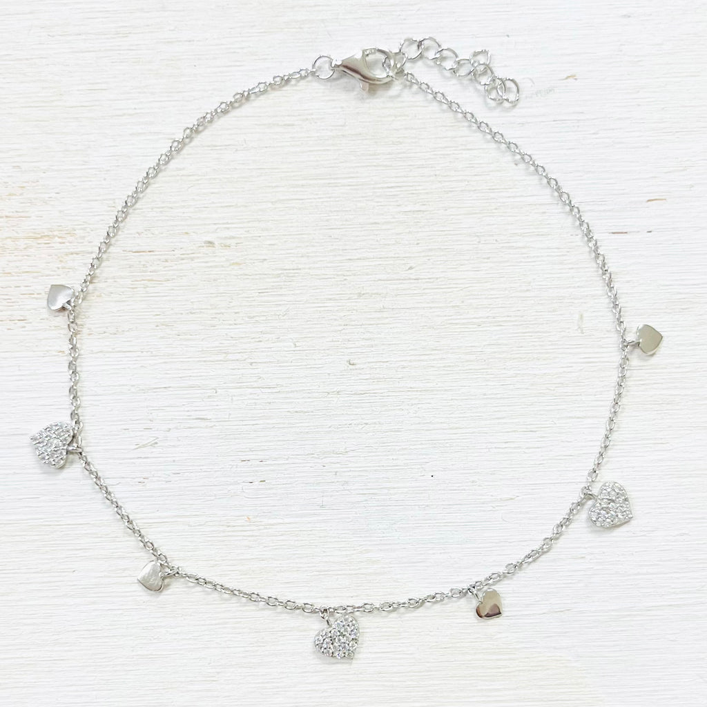 Sterling Silver CZ Heart Anklet