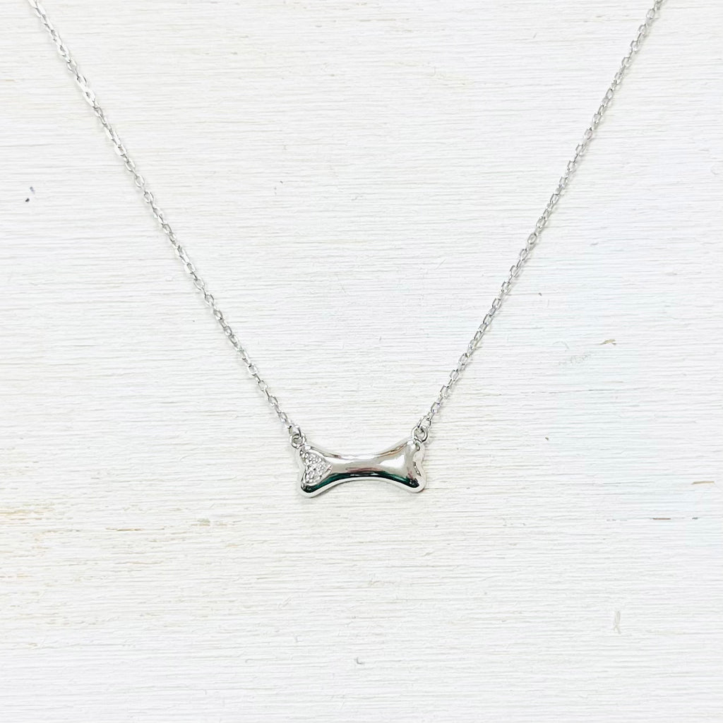 Sterling Silver CZ Heart Dog Bone Necklace
