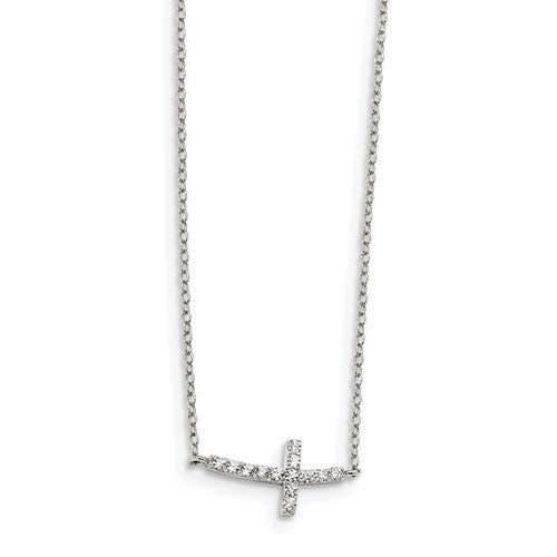 Sterling Silver CZ Sideways Cross Necklace