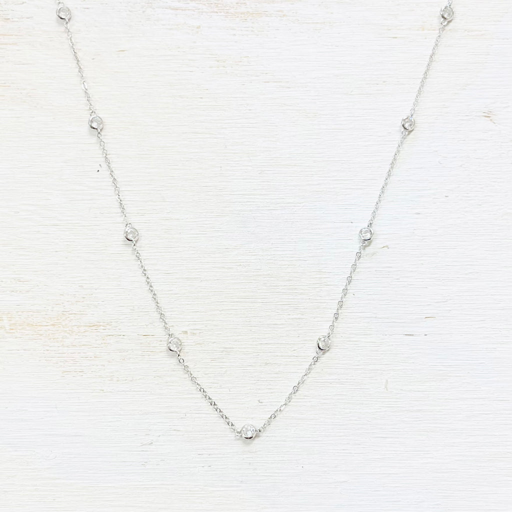 Sterling Silver CZ Station Necklace