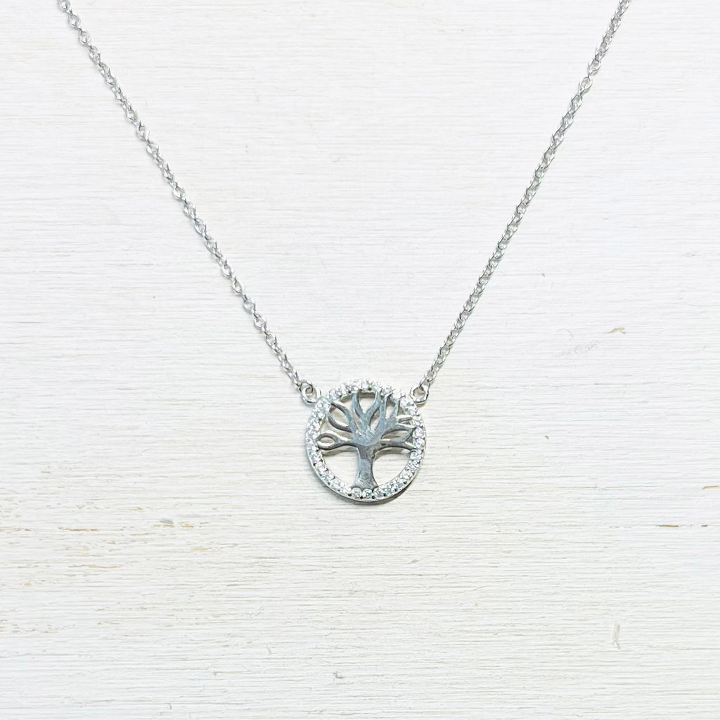 Sterling Silver CZ Tree of Life Necklace