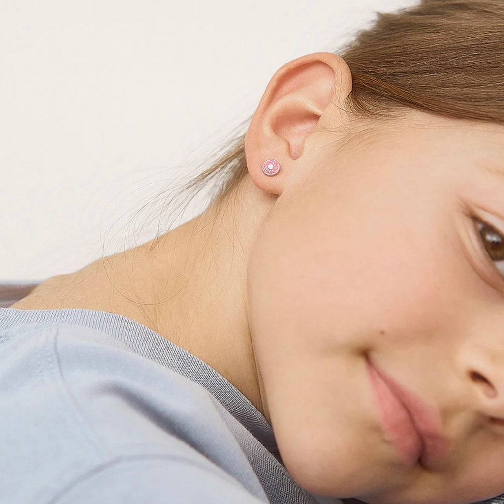 Earring Size: 6mm donut, colorful enamel; 9mm threaded earring post