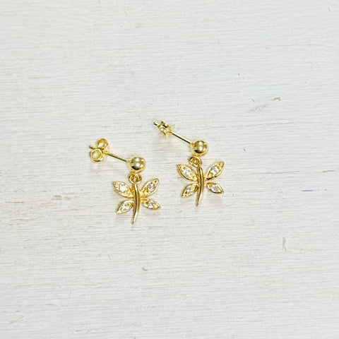 Sterling Silver Dragonfly w/ CZ Dangle Earrings