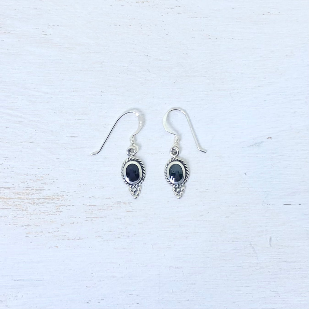 Sterling Silver Drop Fringe Earrings- Black