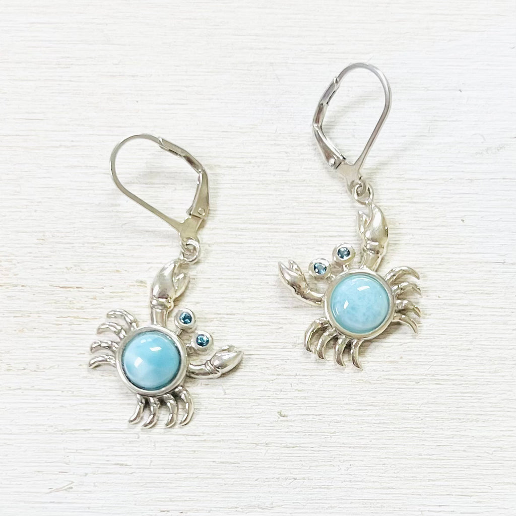 Sterling Silver Estate Crab Earrings w/Larimar Stone