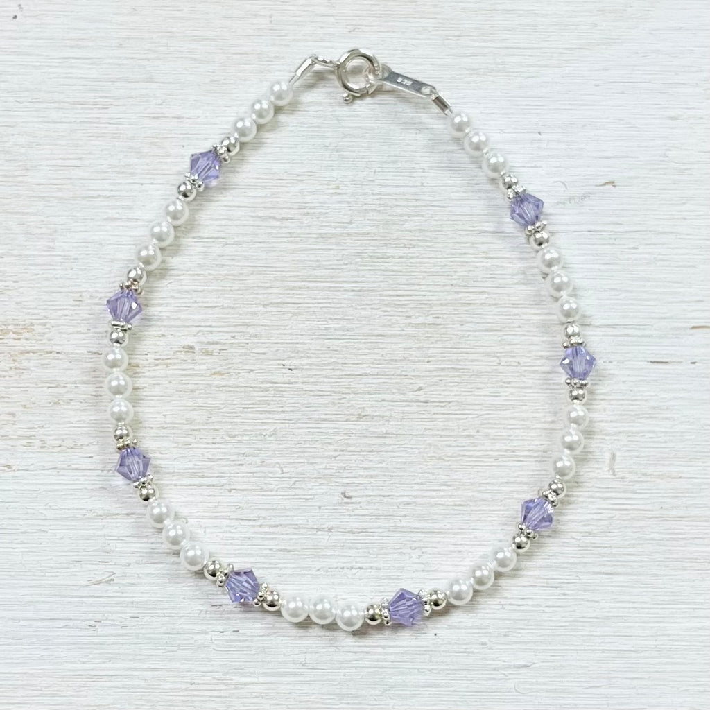 Sterling Silver Freshwater Pearl with Lavender Crystal Bracelet