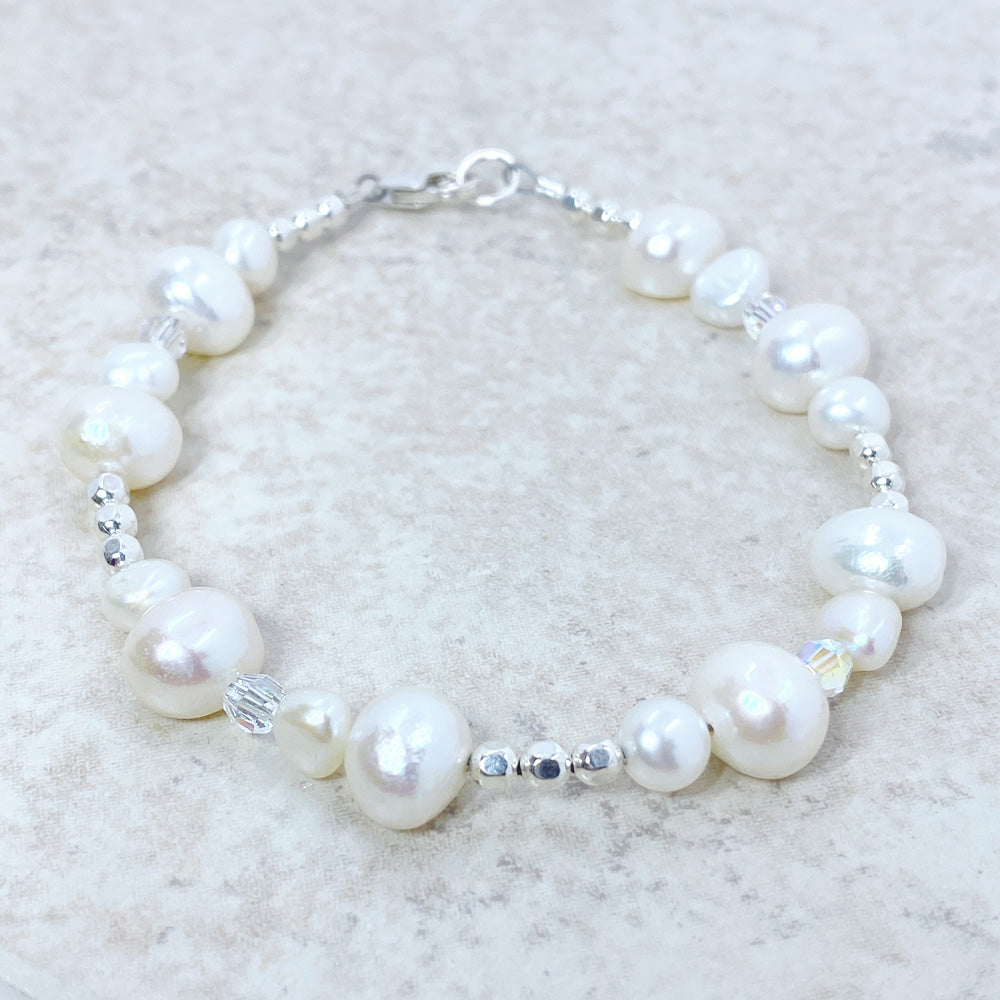Sterling Silver Freshwater Pearl and Crystal Bracelet
