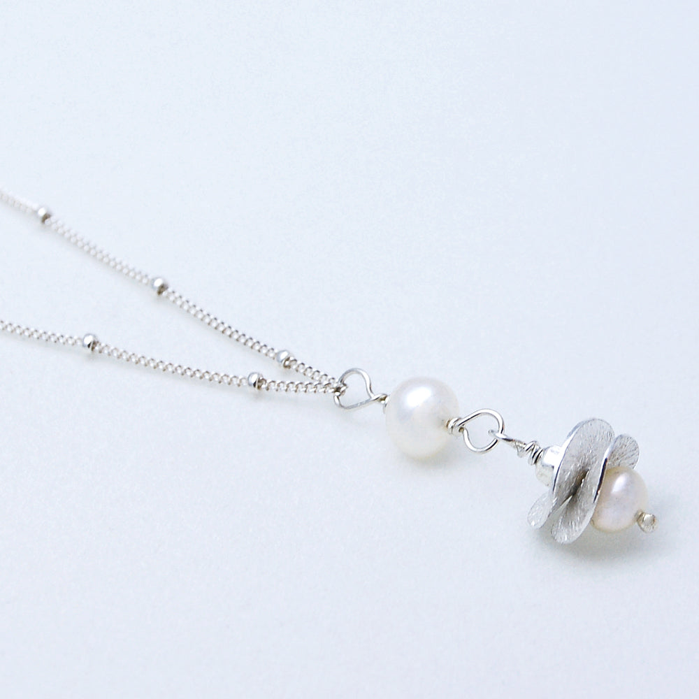 Sterling Silver Freshwater Pearl Wavy Disk Necklace