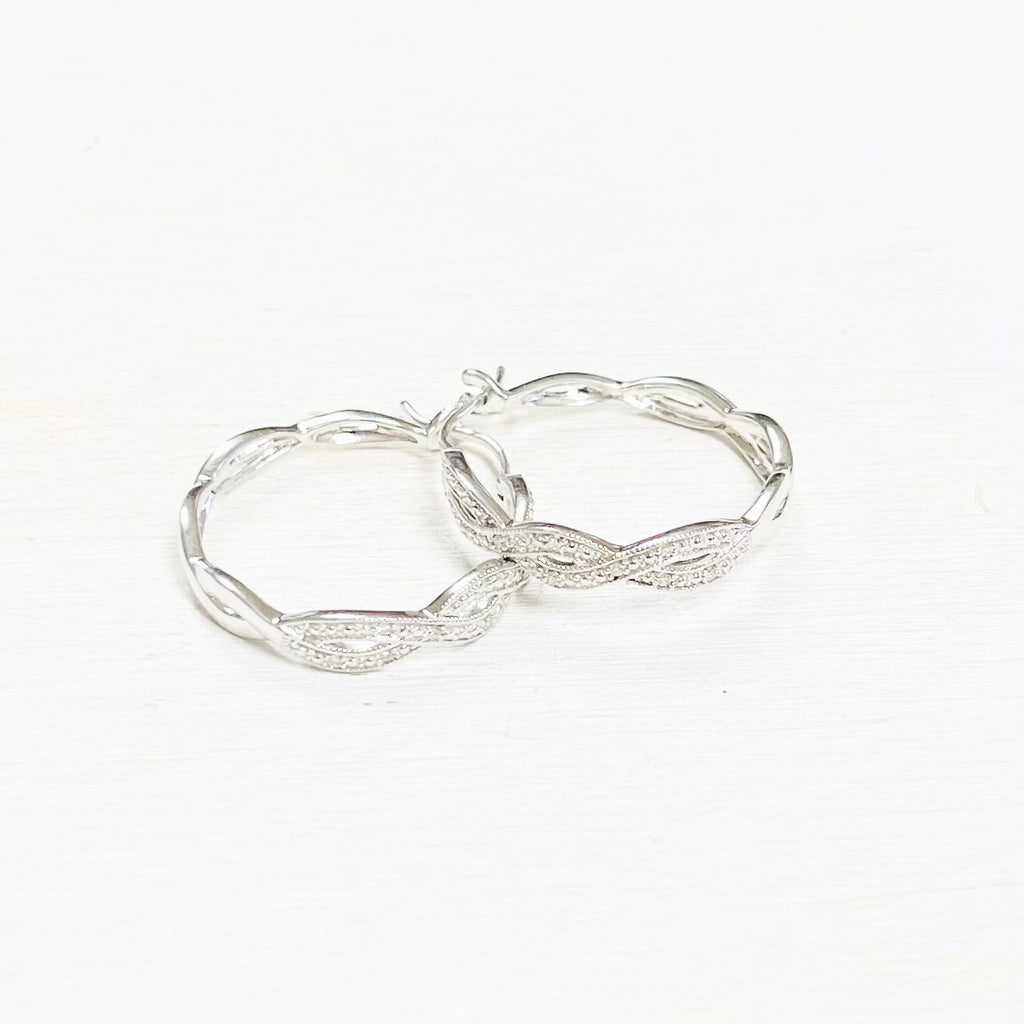Sterling Silver & Genuine Diamond Hoop Earrings