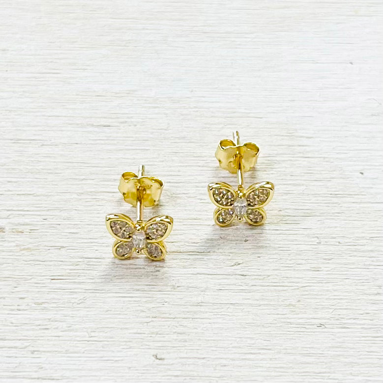 Sterling Silver Gold Plated CZ Butterfly Studs