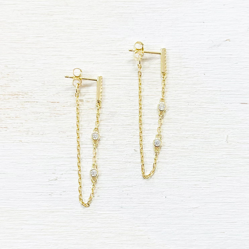 Sterling Silver Gold Plated CZ Chain Earrings