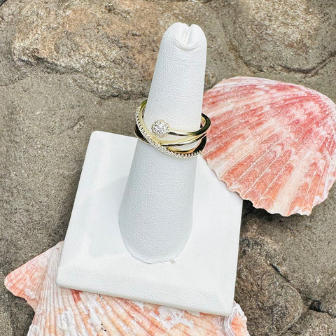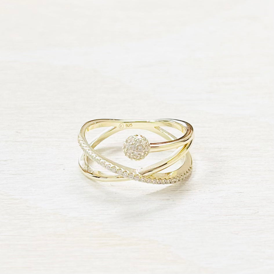 Sterling Silver Gold Plated CZ Criss Cross Ring