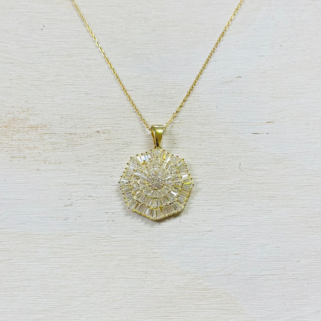 Sterling Silver Gold Plated Round CZ Cluster Necklace
