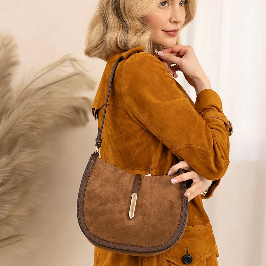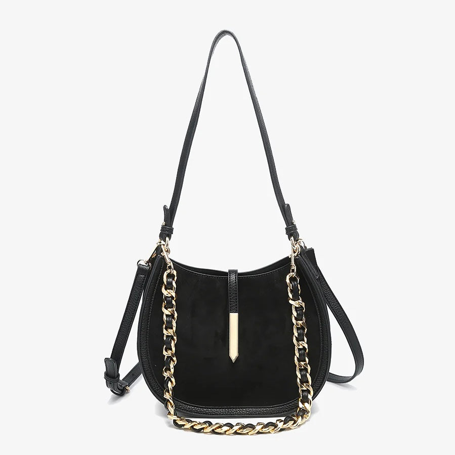 Chic and adaptable, the Luca Vegan Suede Crossbody blends soft texture with elevated details for a refined everyday accessory.