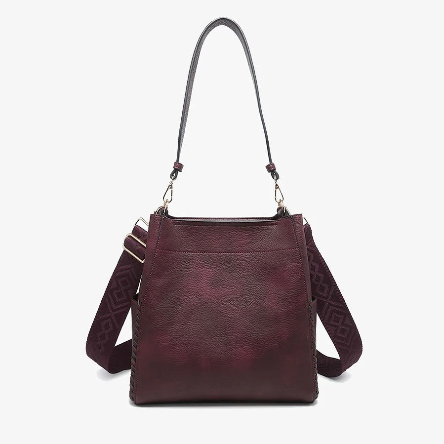 Penny is one of our most sought-after bags this season! This multi-functional bucket bag features side-braided pockets, an adjustable/removable guitar strap, and an inside bag with pockets. You'll love Penny's versaility. Dimensions: 11"L x 12"H x 3.4"D
