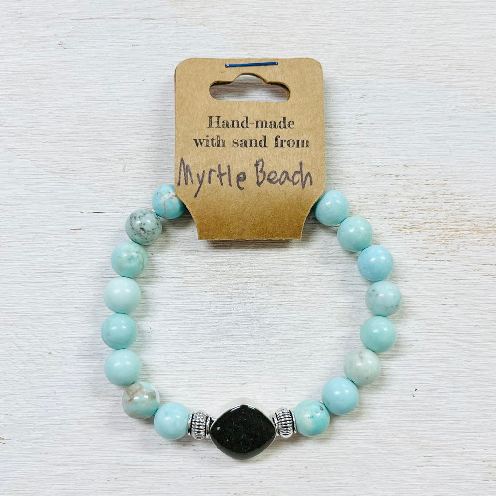 ​​​​​​Take home a piece of the shore with these beautiful stretch bracelets made with sand from your favorite beach destination.