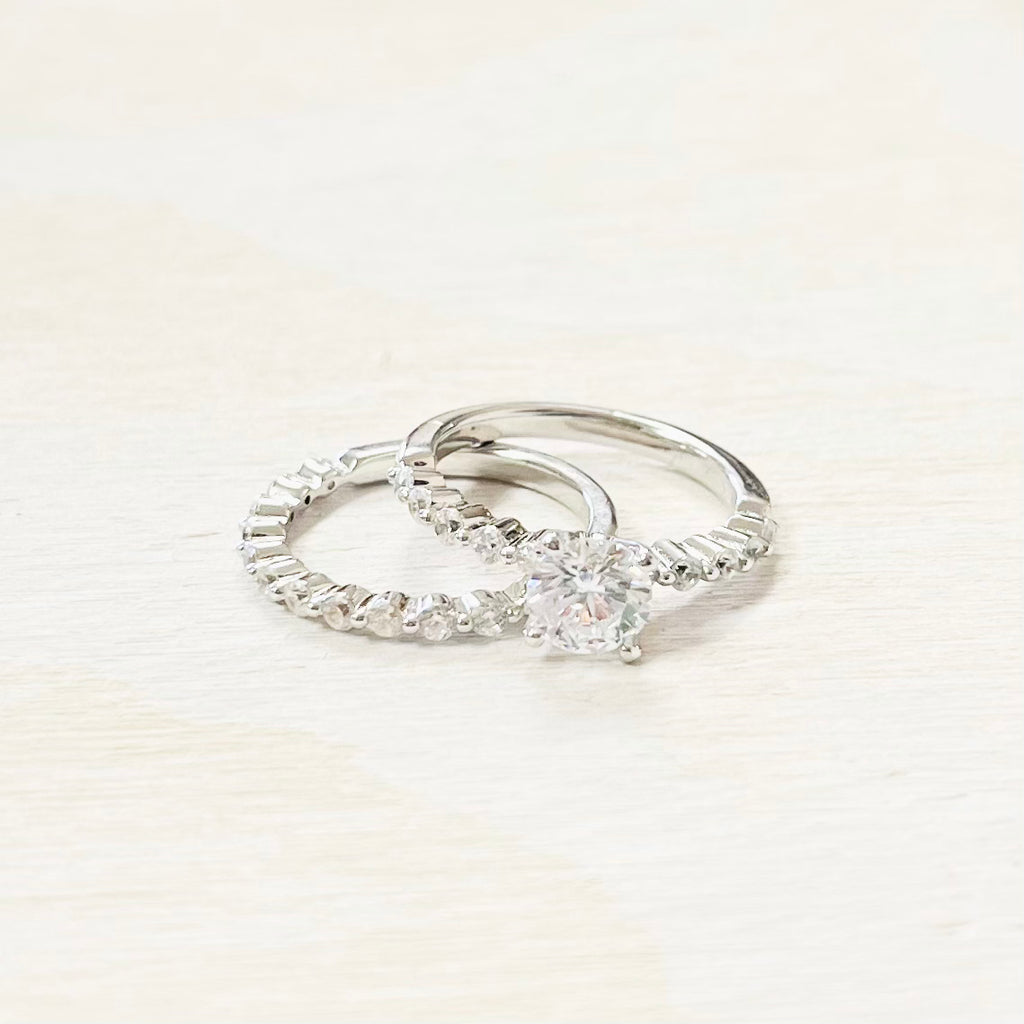 Sterling Silver CZ 2 Pc Engagement Style Ring Set