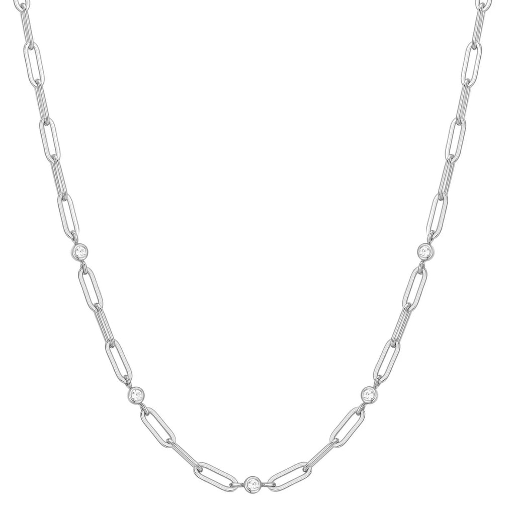 Discover a new level of playful minimalism with this station necklace. The trending deconstructed design brings a fresh, innovative approach to the classic chain. Wear it alone for a minimalist look or layer it with other chains of different thicknesses and textures to create diverse styles.