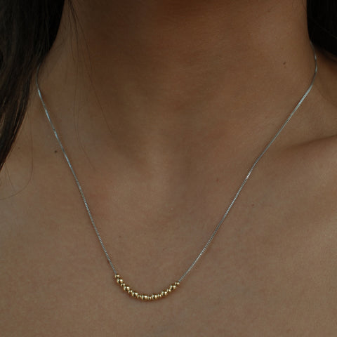 Mixed Metal 18k gold plated 925 sterling silver, 16-18" adjustable length.