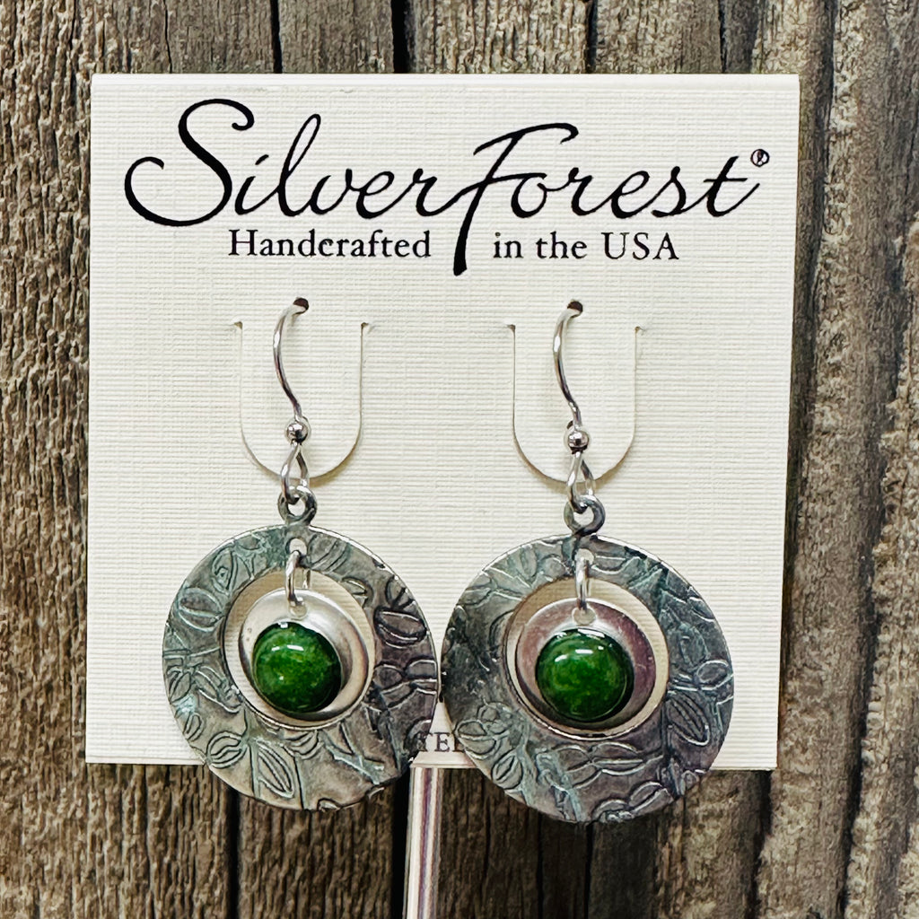 Silver Forest Circle Jade Earrings