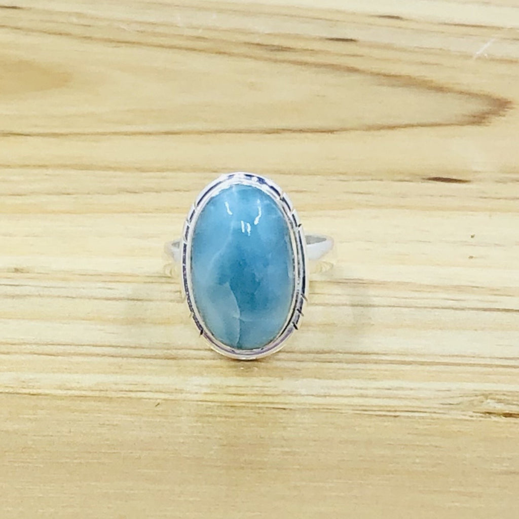 Silver Larimar oval ring with single band-size 9