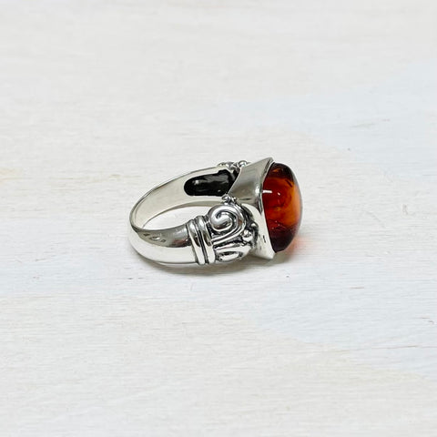 From our Estate Collection. Sterling silver with amber color stone Size 8