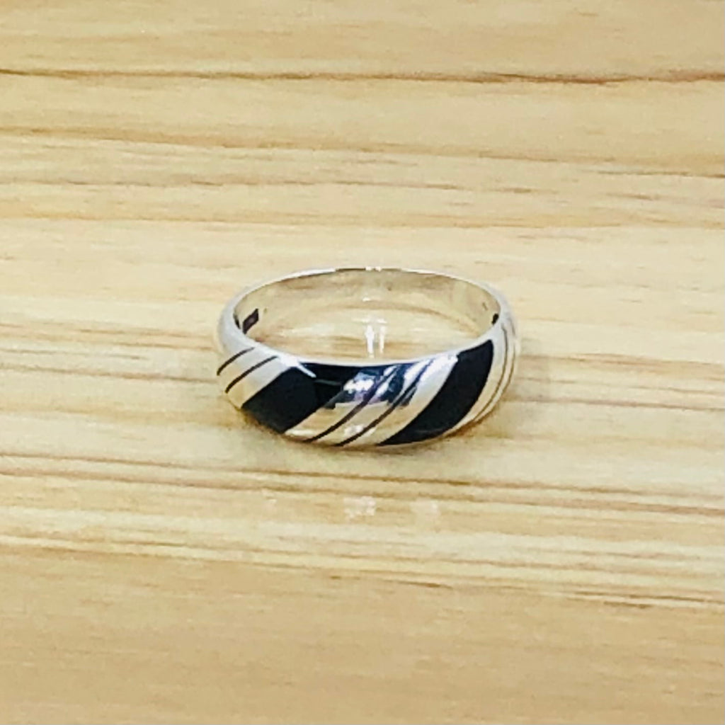 Sterling Silver Black and Silver Stripes-Size 6