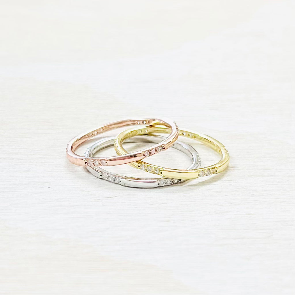 Sterling Silver CZ Tri Color 3 Ring Stack
